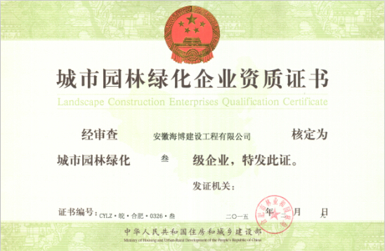 2015年2月17日,值此歲末,新春佳節之際,又一好消息傳來,我公司申報的“城市園林綠化叁級資質”獲批。 我公司自成立以來,一直以施工板塊為主營發展方向,當然在此領域也已然取得了...