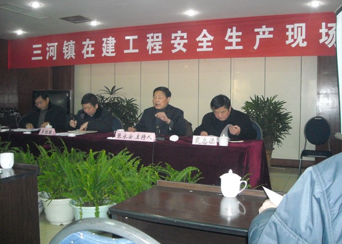 三河鎮(zhèn)在建工程安全生產(chǎn)現(xiàn)場會(huì)于2009年12月19日09時(shí)在三河國際大酒店隆重召開,肥西縣建設(shè)局黨組書記張永安同志參加并主持會(huì)議,參加會(huì)議的領(lǐng)導(dǎo)還有肥西縣建設(shè)局局長李紹敏,副局長解軍培,副局長戴忠德等。