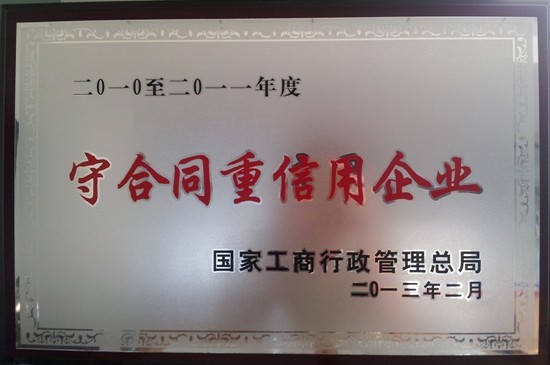 繼2007-2008年度、2009-2010年度連續兩屆“省級守合同重信用”榮譽后,在2010-2011年度“守合同重信用”申報評選中,我公司有幸獲得合肥市工商行政管理局和安徽省工商行政管理局的一致認可,推選申報“國家級守合同重信用”單位,并順利通過國家工商行政管理總局的審查,喜獲“國家級守合同重信用”殊榮。