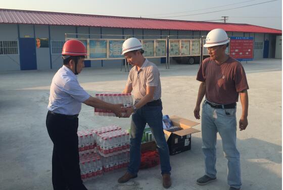 目前,已經(jīng)進入高溫施工期,為做好各施工現(xiàn)場安全生產(chǎn)、防暑、降溫工作,有效遏制夏季各類安全生產(chǎn)事故和高溫中暑事件發(fā)生,保障一線施工作業(yè)人員的安全、健康、清涼。公司以高度的責(zé)任感和緊迫感,由企業(yè)法人帶隊,深入施工現(xiàn)場,開展 “安全、健康、清涼”慰問活動,為一線施工作業(yè)人員送去企業(yè)的關(guān)懷和問候。同時要求各項目部,對一線施工人員的生命和健康抱以高度負責(zé)態(tài)度,把防暑降溫工作落實到每一個班組、每一個工人;“抓兩頭、歇中間”避免中午高溫期間進行室外施工作業(yè);確保施工人員宿舍、食堂、廁所、淋浴間等臨時設(shè)施滿足防暑降溫需求;為現(xiàn)場施工人員提供綠豆湯、茶水、常用防暑藥品,并配備相應(yīng)的急救器材;加強對飲用水、食品、食堂衛(wèi)生管理,嚴(yán)防食物中毒事件;加強防暑降溫工作檢查,注重防火,排除隱患,確保安全生產(chǎn)。