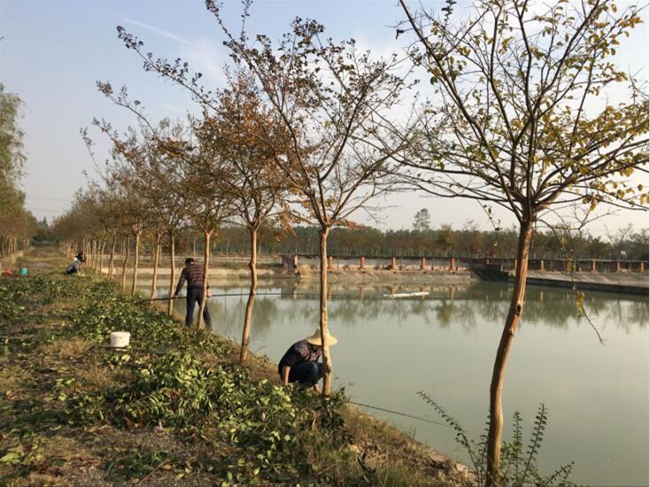 園區里幾步一景,處處秋意正濃: 園區分為苗木種植觀賞區、水產生態養殖區、天然垂釣體驗區。苗木種植觀賞區景觀植物林規品種規格多,具有較高的經濟價值和觀賞價值:有紫薇、紅葉石楠、木子李、海棠、玉蘭、紅楓、垂絲海棠等,不同規格樹木相間,行行片片排排。微風拂面,讓你聞到秋風特有的清香,樹葉被秋風吹得涼爽,地上鋪了一層五彩的斑斕,告訴我們這是秋的時節。園區工人很勤勞,有的在補種幼苗,有的在修剪枝葉,一遍繁忙和生機,園區也因你們身影而更美麗精彩。