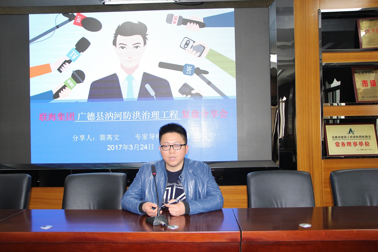 2018年3月24日在集團(tuán)公司培訓(xùn)中心舉行了聯(lián)海集團(tuán)第一次項(xiàng)目經(jīng)營(yíng)管理復(fù)盤分享會(huì),本次分享會(huì)由廣德縣汭河防洪治理工程項(xiàng)目經(jīng)理裴高文從項(xiàng)目概況、項(xiàng)目實(shí)施、項(xiàng)目收益三大方面對(duì)項(xiàng)目進(jìn)行詳細(xì)的復(fù)盤總結(jié)。復(fù)盤結(jié)束后,以集團(tuán)各公司業(yè)務(wù)板塊、職能部門為小組,由分管負(fù)責(zé)人組織小組成員討論,并現(xiàn)場(chǎng)提出問題,與分享人進(jìn)行交流互動(dòng),取得了良好的效果。