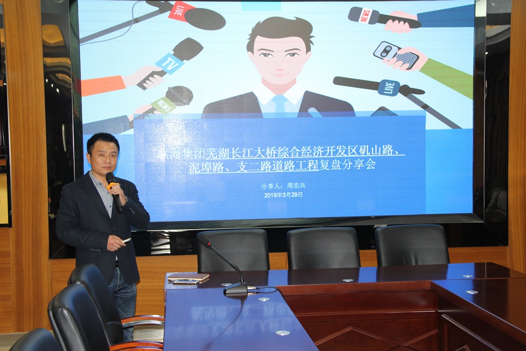 2019年3月29日下午,由發(fā)展中心組織的2019年第二場項目復(fù)盤分享交流會在聯(lián)海集團五樓會議室舉行,本次復(fù)盤分享是由周宗兵同志帶來的《蕪湖長江大橋綜合經(jīng)濟開發(fā)區(qū)磯山路、泥埠路、支二路道路工程復(fù)盤分享》,集團公司各板塊領(lǐng)導(dǎo)及同仁參加了此次會議。