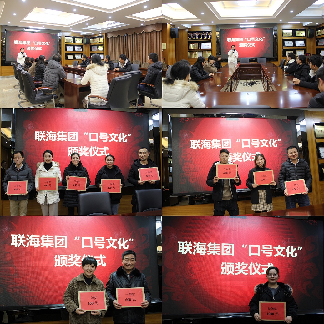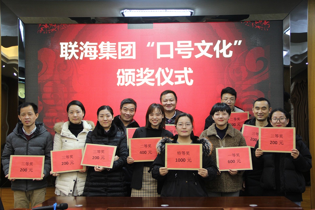 近期,集團公司開展了《關于聯(lián)海集團“口號文化”征集大賽的通知》活動,經(jīng)過兩次征選、全員投票的方式,評比出特等獎、一等獎、二等獎、三等獎共計11條獲獎口號。并于2019年12月25日下午17:00由發(fā)展戰(zhàn)略執(zhí)行中心組織了頒獎儀式,對獲獎口號的部門給予表彰和現(xiàn)金獎勵。